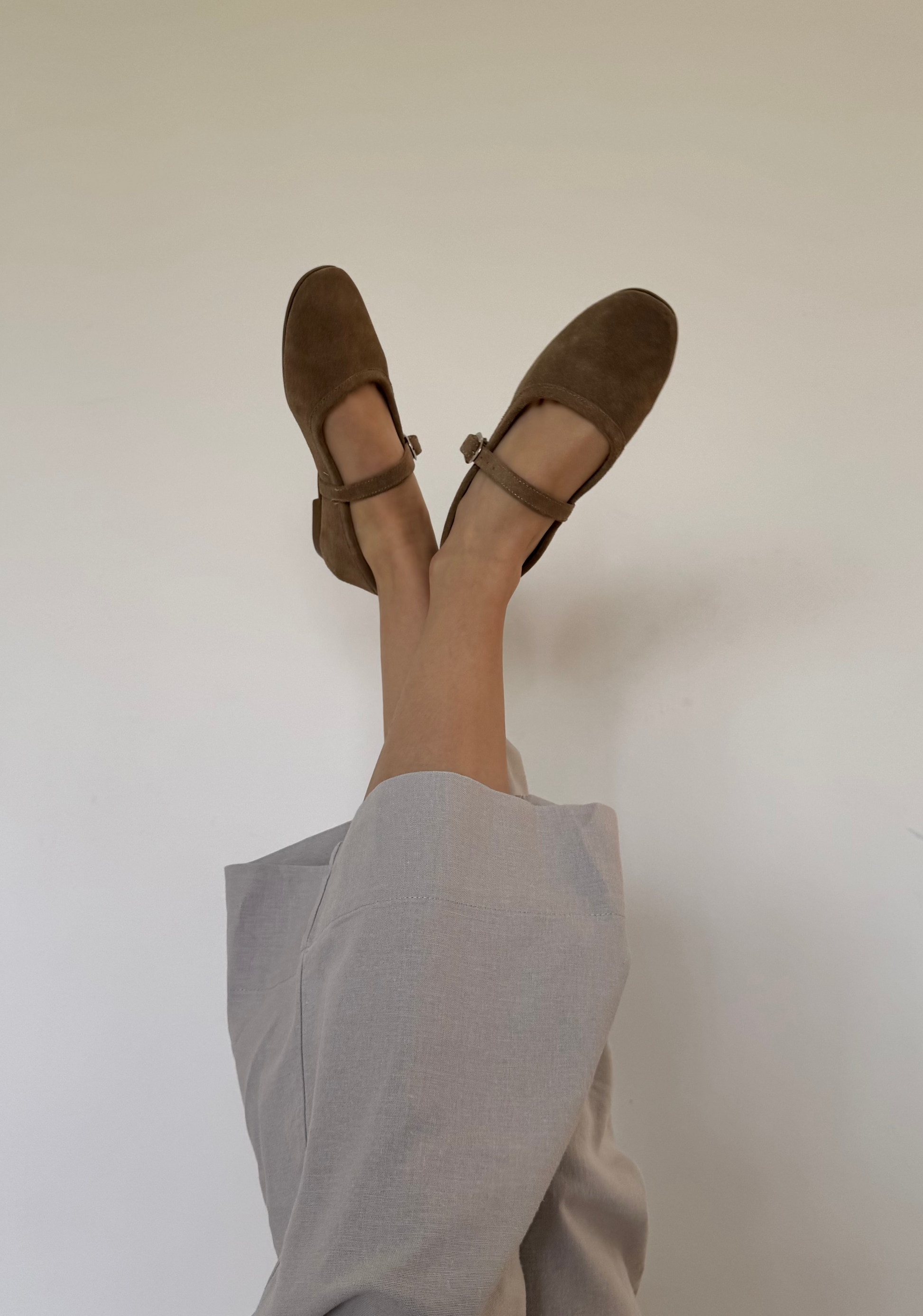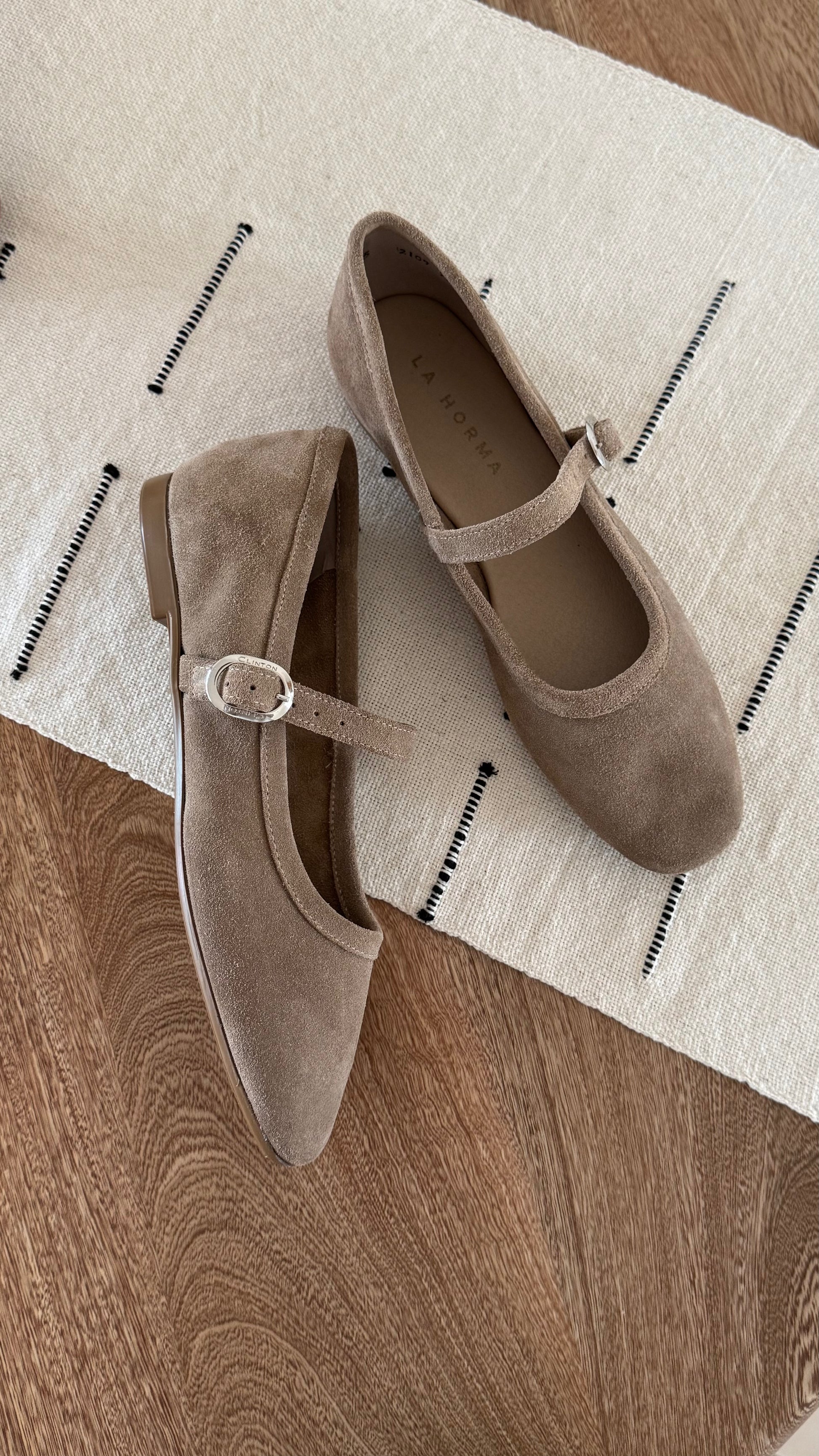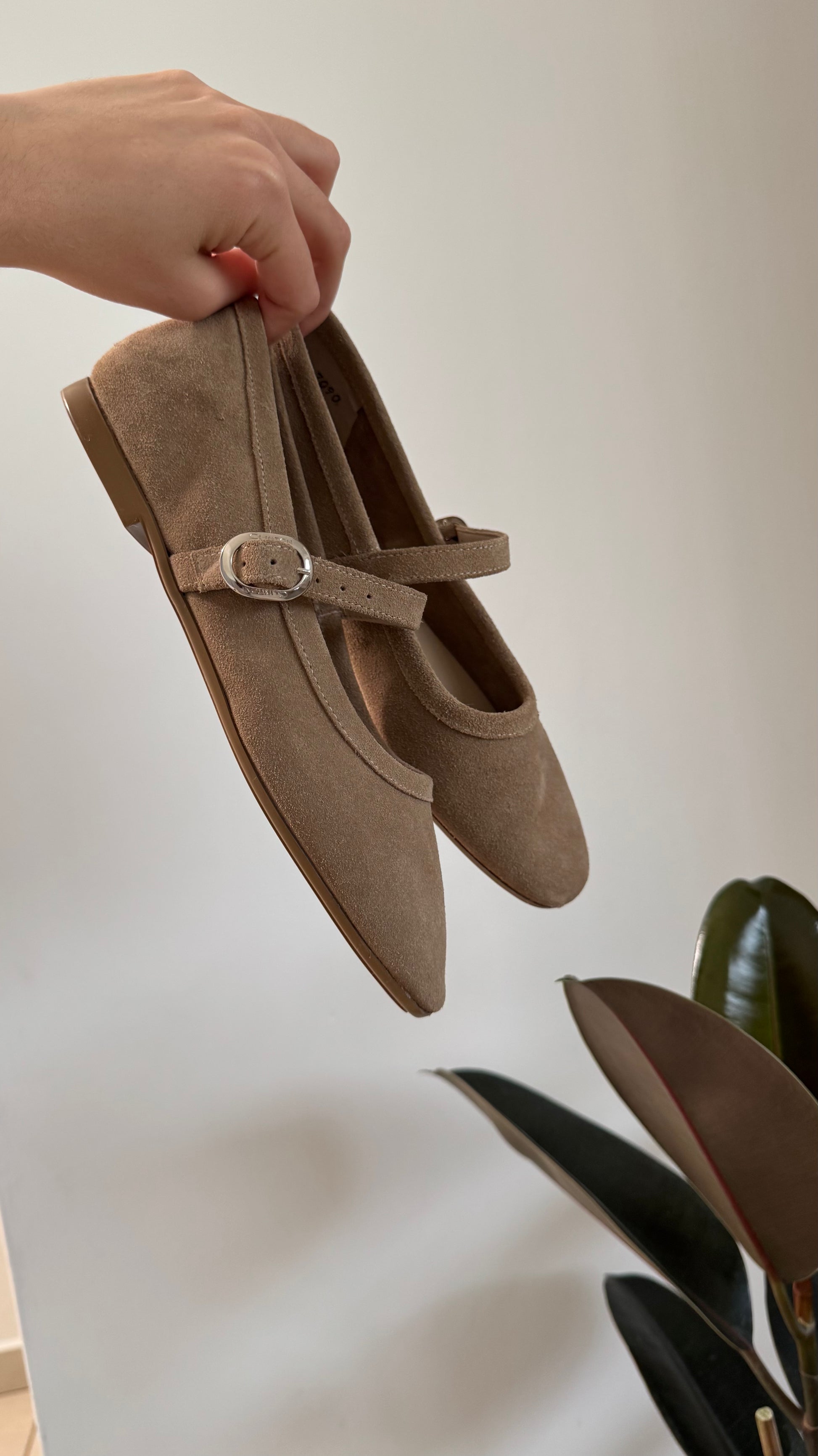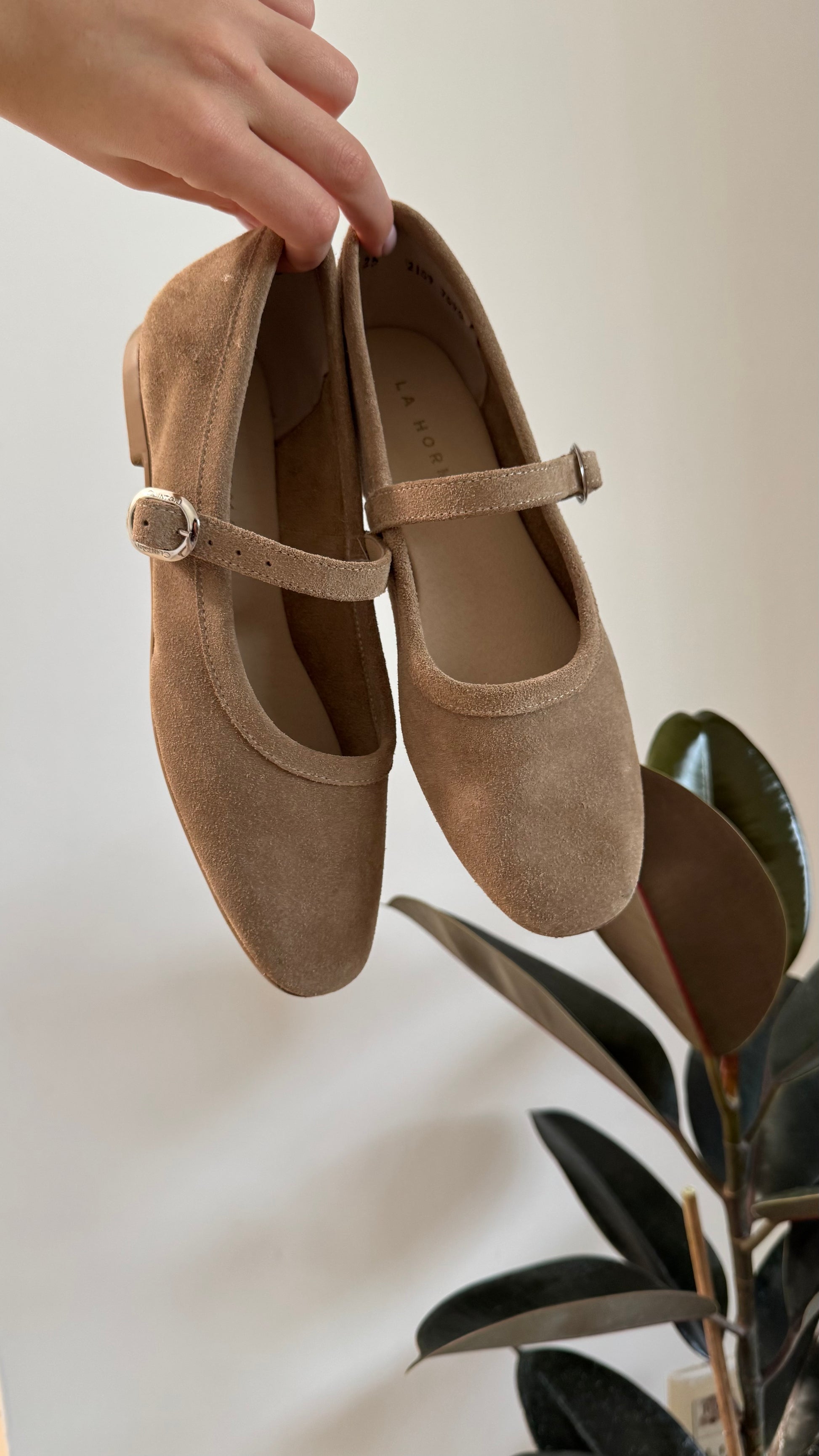 FLATS COLOR CAMEL, MATERIAL CORTE GAMUZA PIEL. SUELA DE PISO. HORMA AMPLIA PEDIR 1 NUMERO MENOS.